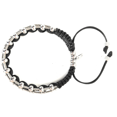 La pulsera está unida por un hilo encerado estilo cuero y terminado con un cierre ajustable con el logo de la marca en acero.