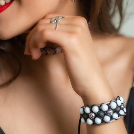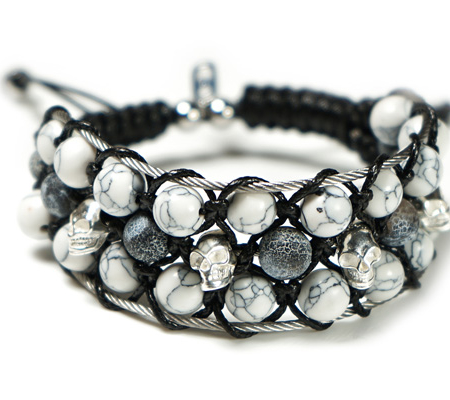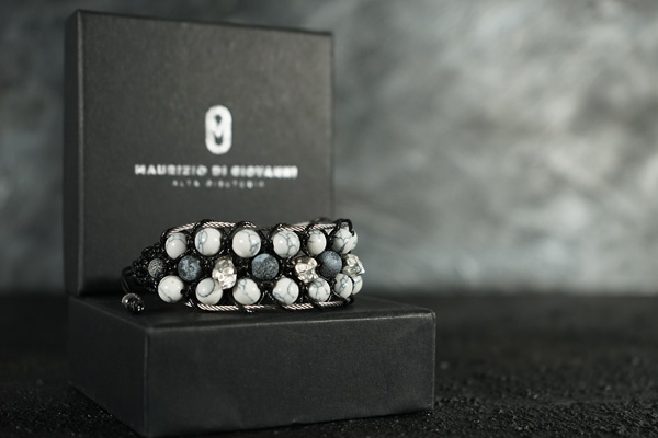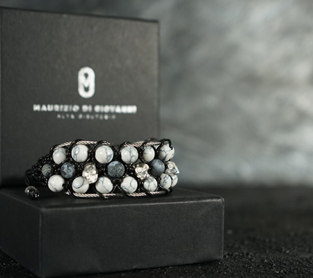 El modelo Napoli, es la pulsera más trabajada de la colección. Consiste en 3 filas de piezas que combinan dos tipos de piedras de 8mm con piezas de plata tailandesa decorada en un modelo o calavera de plata de ley 925 en otro modelo. El conjunto está unido por hilos de acero marino A4 e hilo encerado estilo cuero y terminado en un cierre ajustable con el logo de la marca en acero.