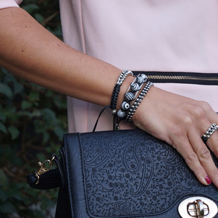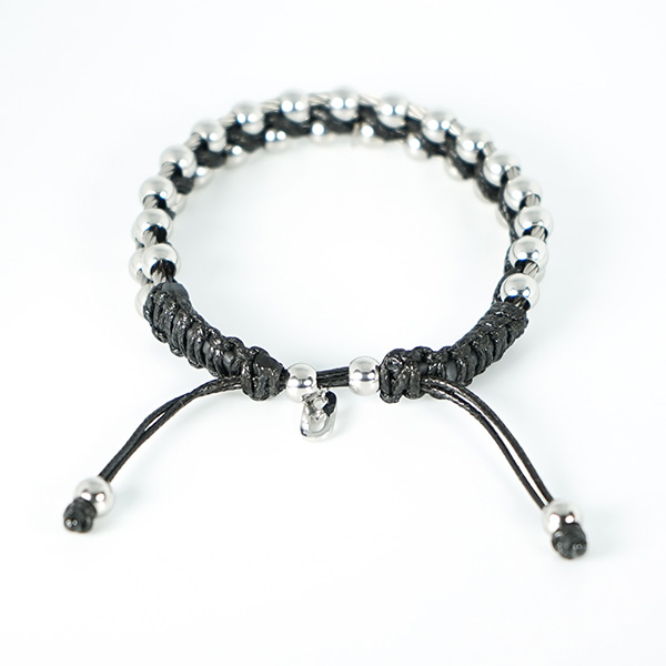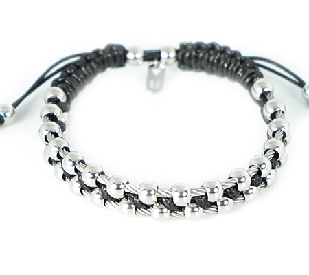 El modelo Siena, hecho a mano, es una pulsera moderna y actual realizada con dos hilos de acero marino A4 y con medias cañas en acero inoxidable 316. La pulsera está unida con hilo encerado estilo cuero y terminada en un cierre ajustable con el logo de la marca en acero.